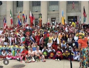 “The NCI parade group of 125 participants is organized by the Nationalities Council of Indiana (NCI). The photos introduce us to a riot of vibrant color, exotic and iconic national festive fashions, and the joyful spirit of participants from many cultures and over 40 nationalities. The participants in their spectacular outfits and enthusiastic, radiant spirit add to the Iconic Moments in Indy, the theme of this year’s (2024) parade. We are thrilled to see the NCI unit as an annual feature of the nationally renowned festival parade for the last 14 years.” -KP Singh, Artist & Illustrator (May 2024)