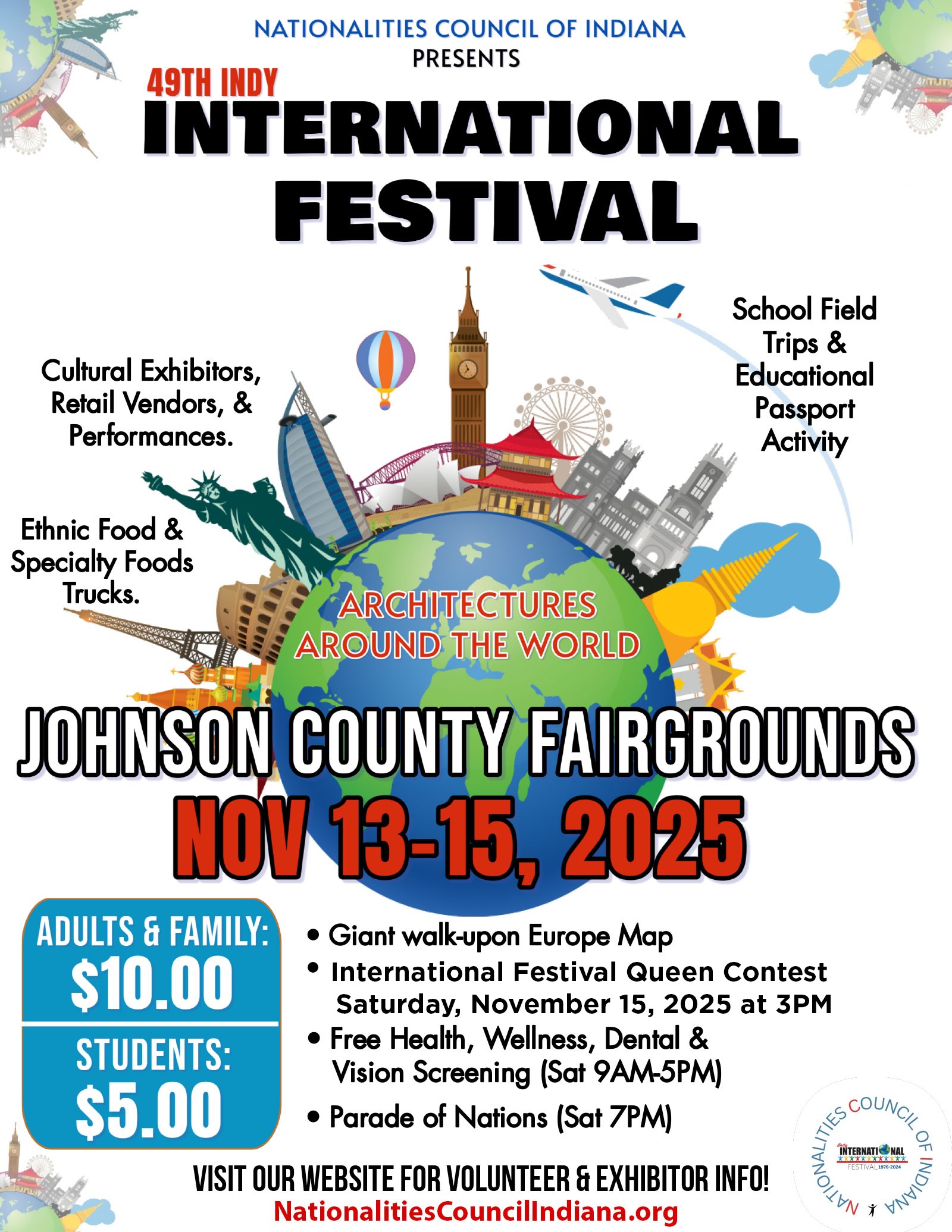 On behalf of the Nationalities Council of Indiana, THANK YOU for your tremendous support in making the 2025 Indy International Festival a resounding success! Your commitment, energy, and partnership helped bring our community together in celebration of culture, heritage, and unity.